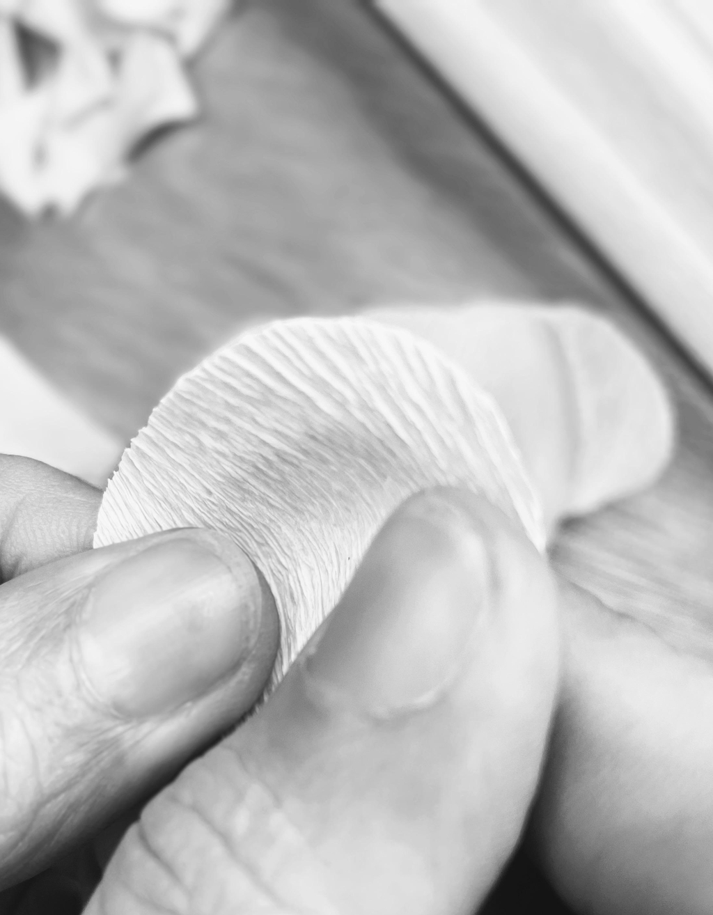 Chaque fleur commence par un patron que je dessine et mets au point moi-même. Je passe de nombreuses heures à observer les fleurs naturelles, à faire des recherches, des prototypes et des essais, jusqu’à trouver les formes les plus justes. Cette phase de création me permet d’obtenir une base fidèle et harmonieuse, pensée sur mesure pour chaque variété.