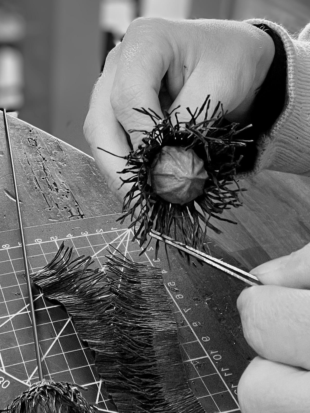 L’assemblage final, minutieux et délicat, réunit chaque détail pour former une fleur unique.Un léger vernis vient protéger et sublimer la création, lui donnant son éclat définitif.